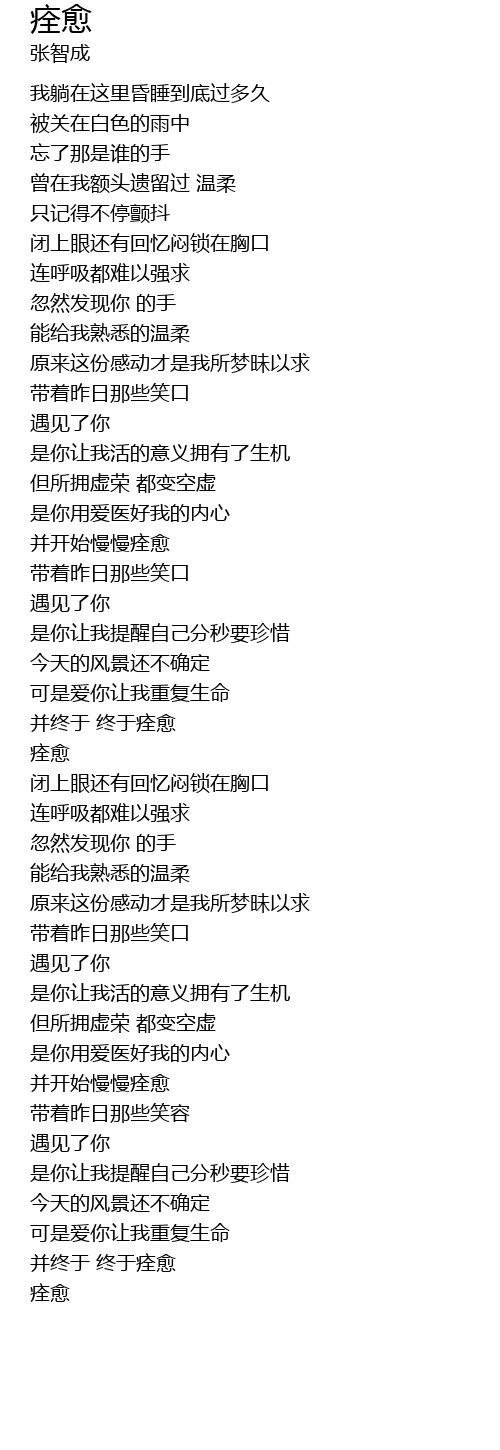 | [04:05.360] | 并终于 终于痊愈 |
