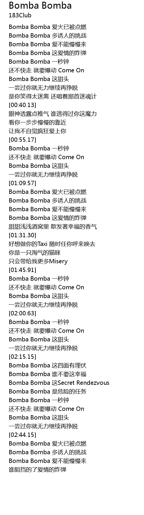 | [02:48.58] | Bomba Bomba 多诱人的挑战 |