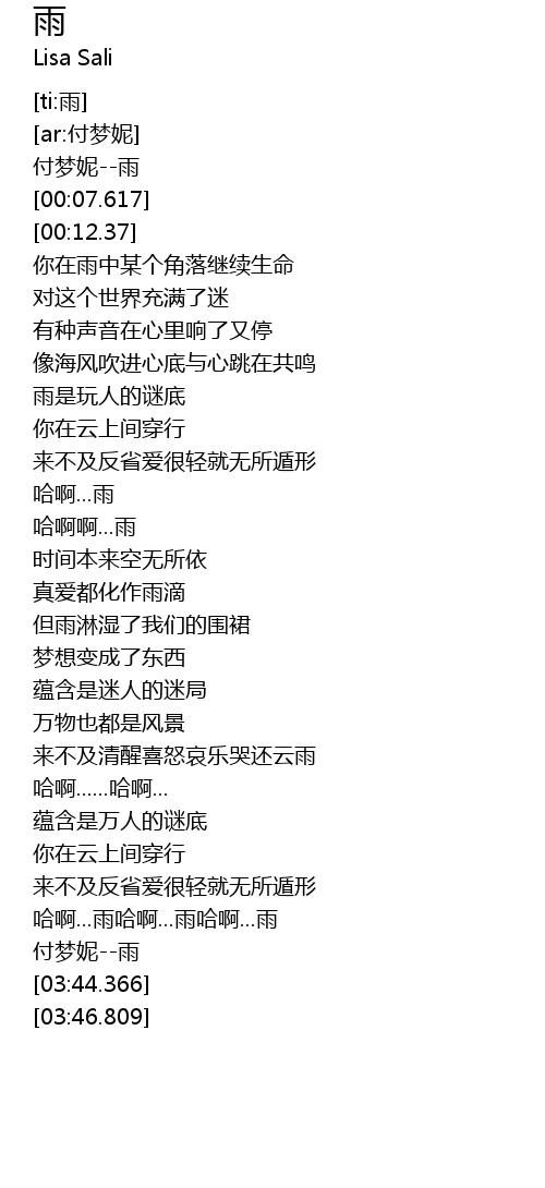 | [03:42.944] | 付梦妮--雨 |