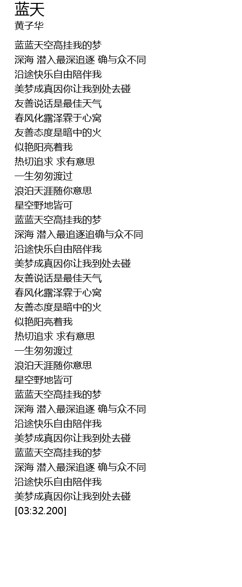 | [02:58.200] | 蓝蓝天空高挂我的梦 |