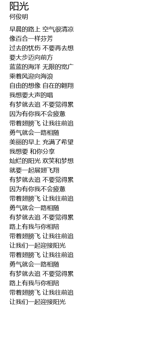 | 歌曲 | 阳光 |