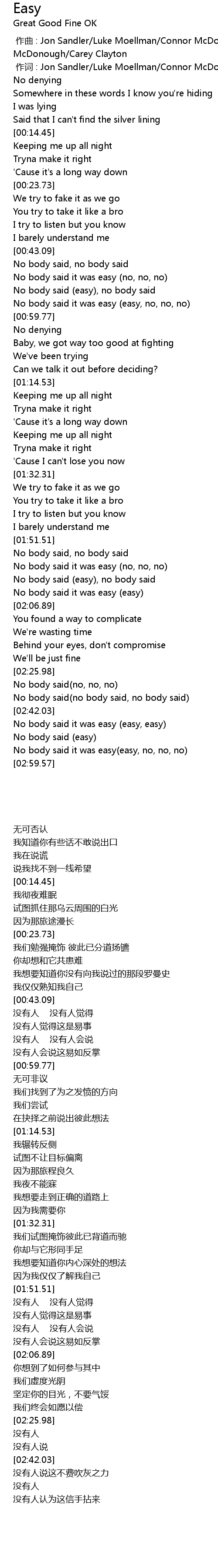 | [02:00.26] | No body said (easy), no body said |