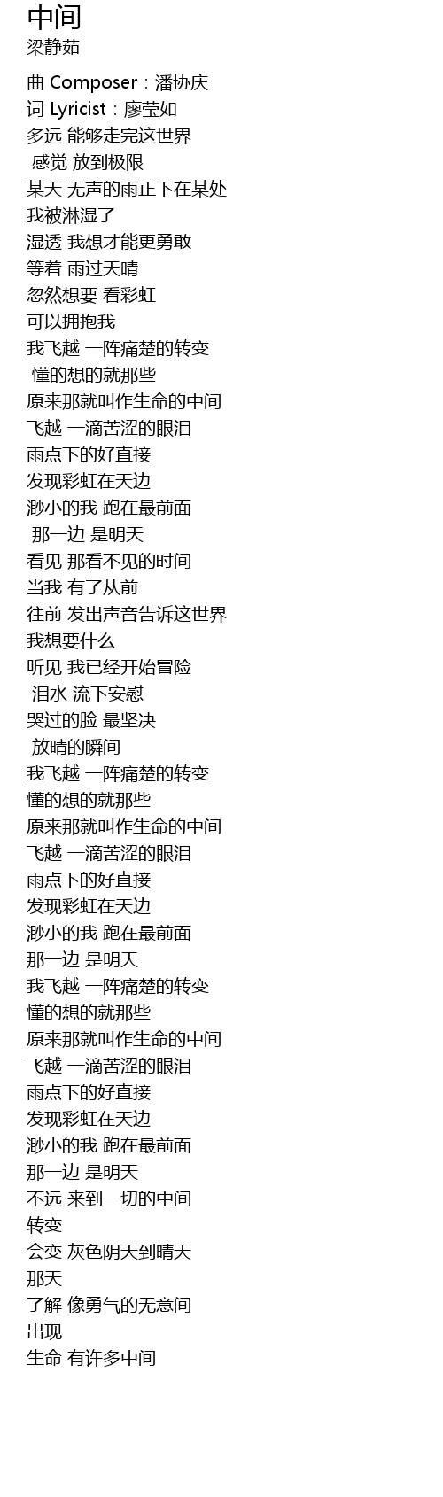 | [03:47.04] | shēng mìng yǒu xǔ duō zhōng jiān |