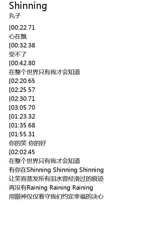 | [02:52.13][02:20.65][01:00.51] | 有你在Shinning Shinning Shinning |