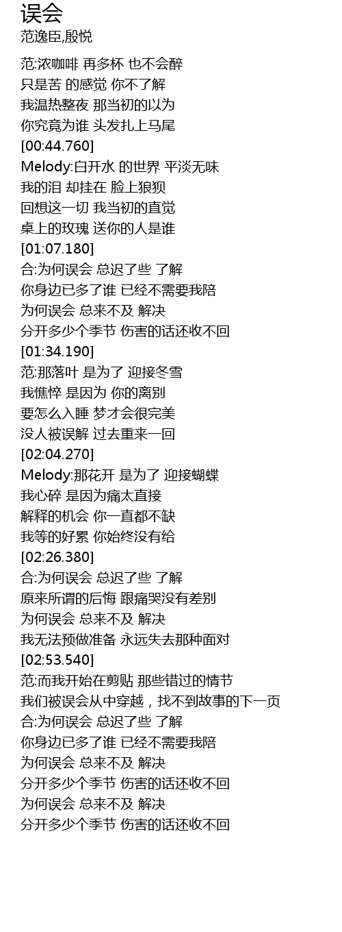 | [03:36.290] | 合:为何误会 总迟了些 了解 |