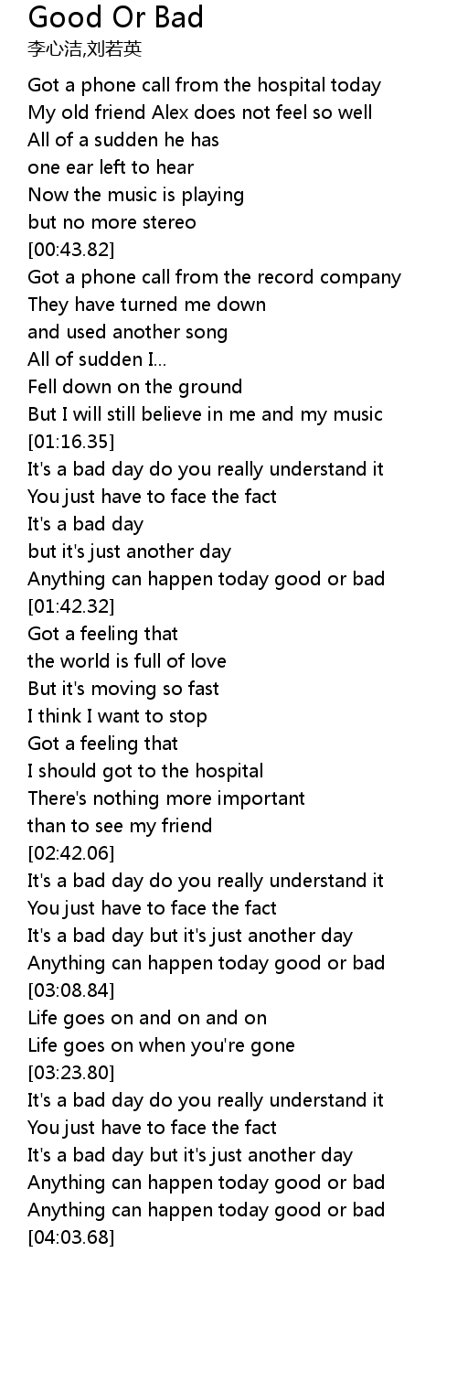 | [02:43.78] | It's a bad day do you really understand it |