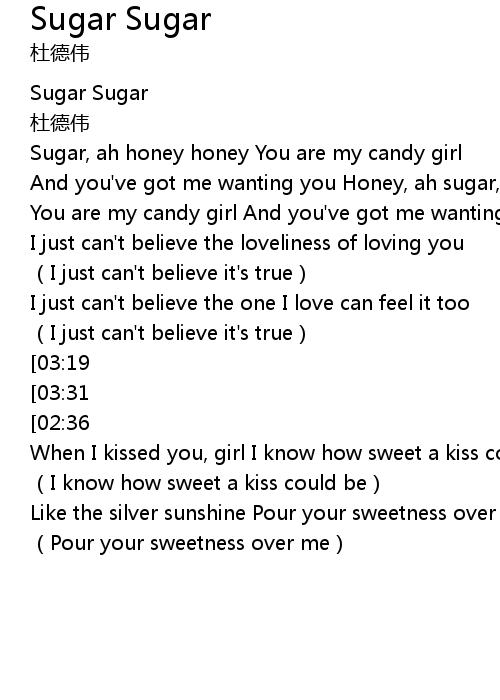 | [00:36] | And you' ve got me wanting you Honey, ah sugar, sugar |