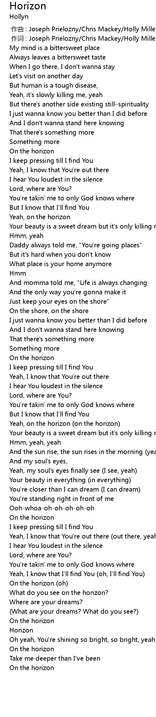 | [03:22.27] | On the horizon (oh) |