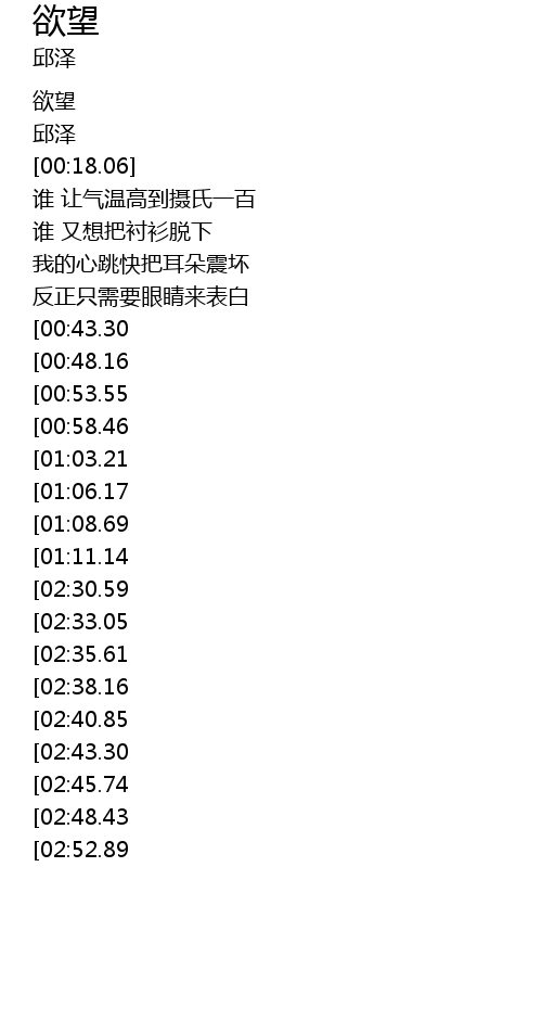 | [02:53.67][02:30.59][01:16.43] | 我的欲望命令我呼吸 |