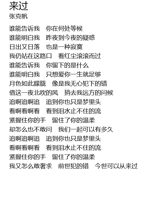 | [03:02.38] | 我又怎么敢奢求 前世犯的错 今世可以从来过 |