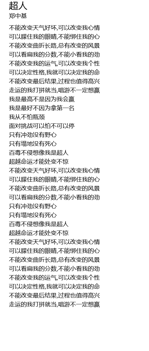 | [00:27.950] | 不能改变我的运气,可以改变我个性 |