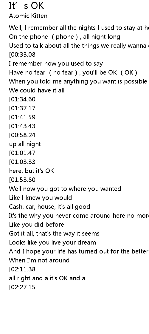 | [00:43.42][01:41.59][02:29.82] | I say it's OK |