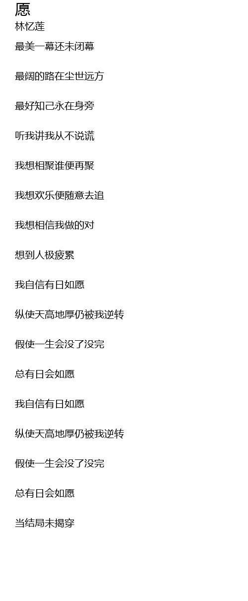 | 歌曲 | 愿 |
