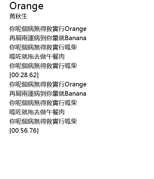 | [00:33.82] | 你呢個病無得救實行Orange |