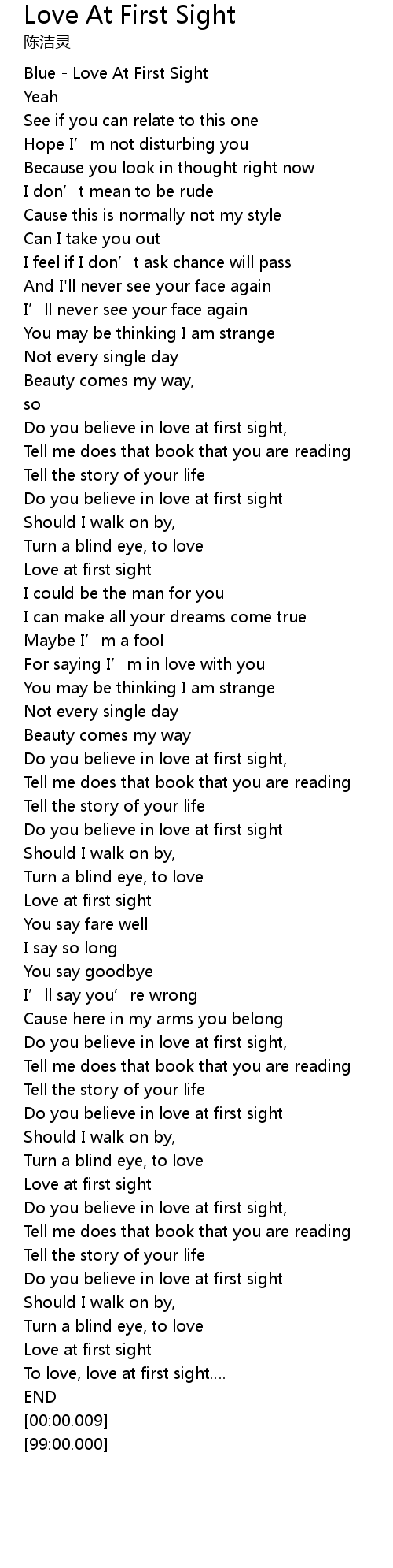 | [00:00.100] | Blue - Love At First Sight |
