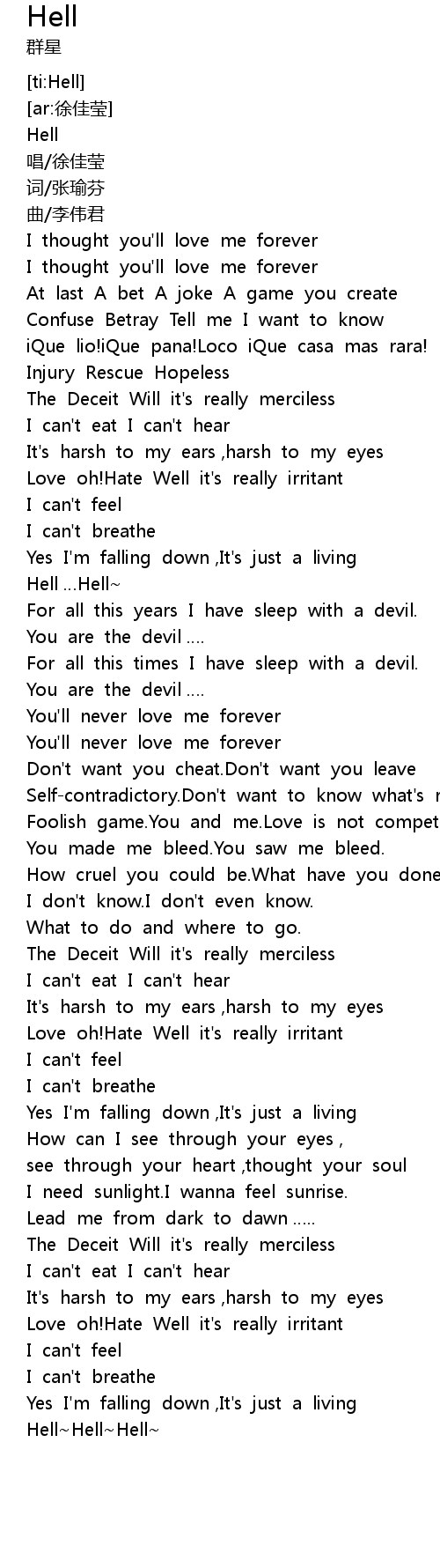 | [00:42.812] | Confuse Betray Tell me I want to know |