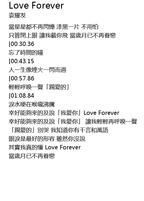 | [03:19.82] | qí shí wǒ zhēn de dǒng Love Forever |