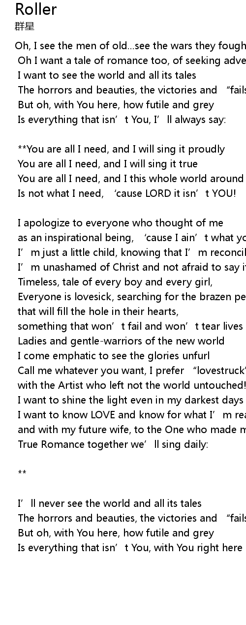 | Oh I want a tale of romance too, of seeking adventure and finding truth | |