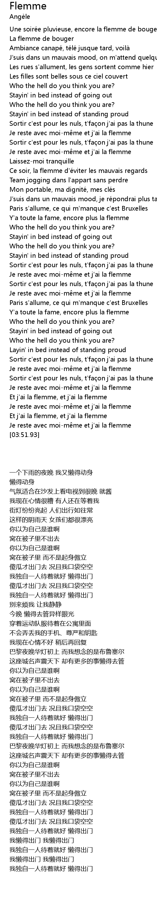 | [03:38.61] | Je reste avec moi-même et j'ai la flemme |
