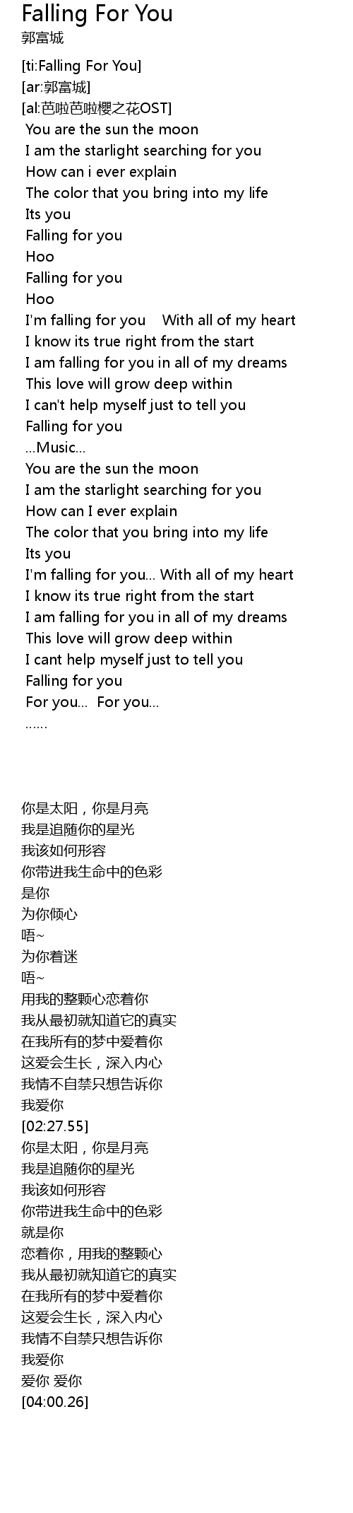 | [03:16.01] | I'm falling for you... With all of my heart |