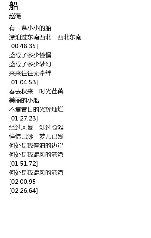| [00:38.88] | yǒu yī tiáo xiǎo xiǎo de chuán |