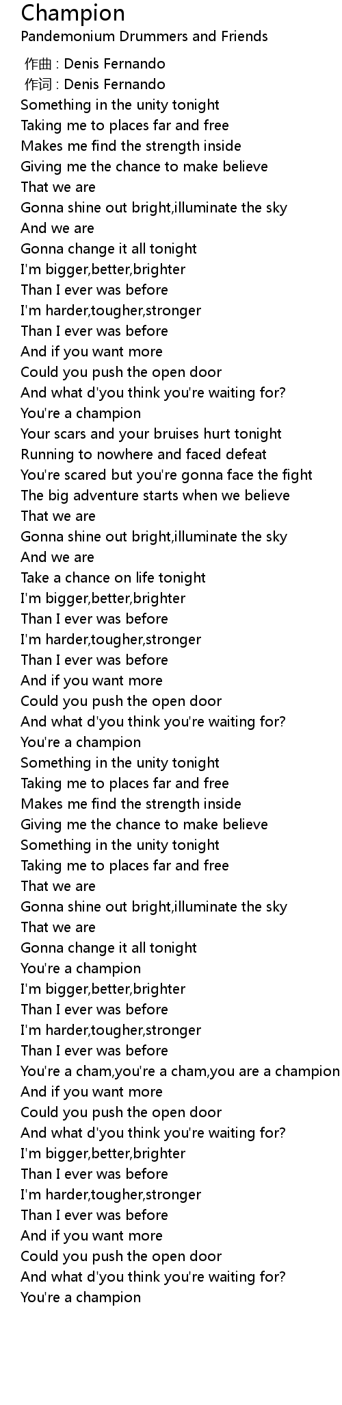 | [01:11.000] | You' re a champion |