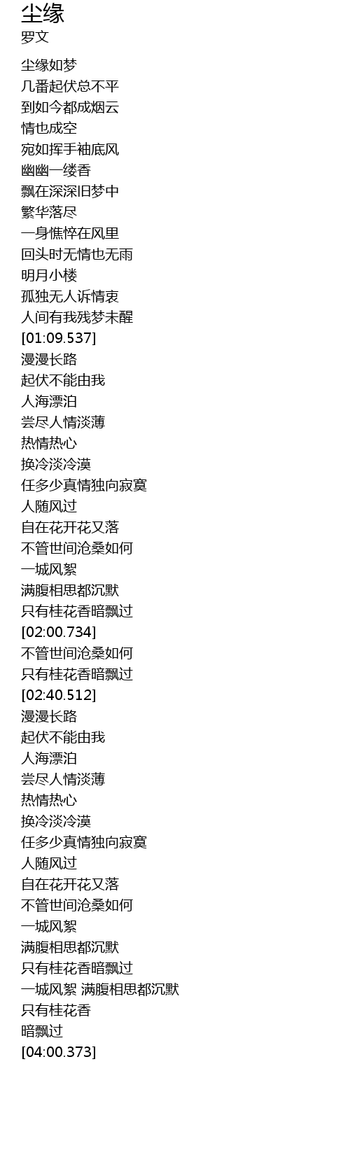 | [00:19.940] | 尘缘如梦 |