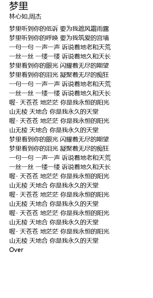 | [01:48.900] | 山无棱 天地合 你是我永久的天堂 |