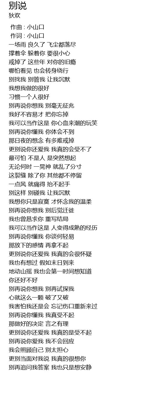 | [00:01.000] | zuò cí : xiǎo shān kǒu |