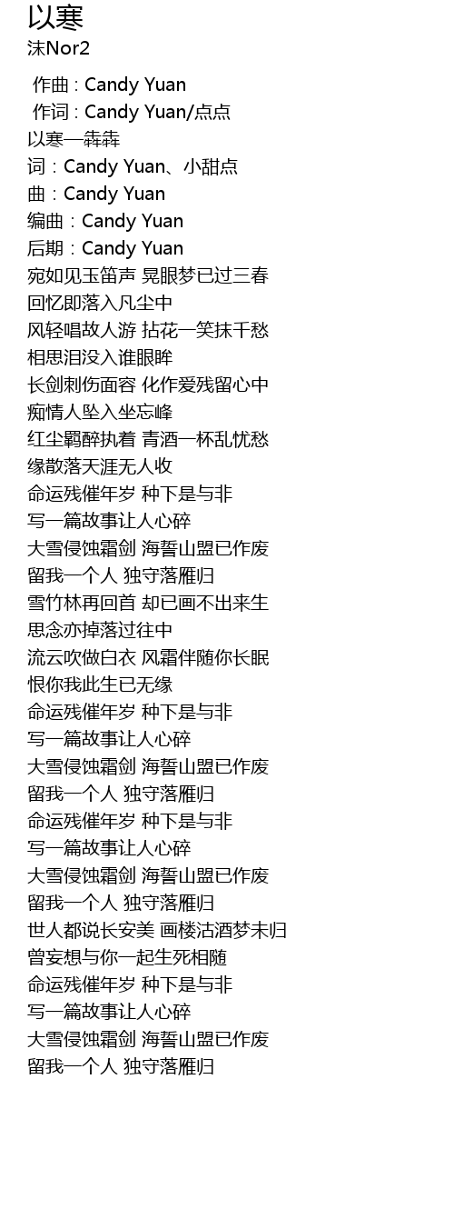 | [03:01.635] | 大雪侵蚀霜剑 海誓山盟已作废 |