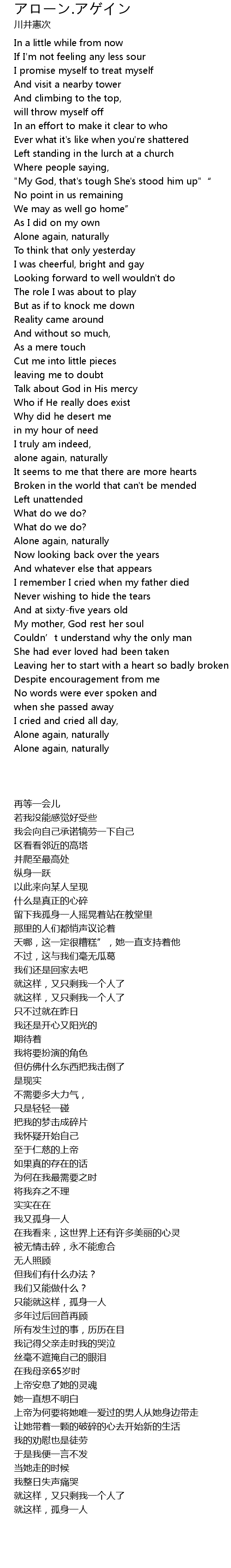 | 歌曲 | アローン.アゲイン |