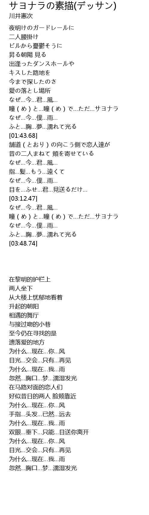 | [03:26.32] | 瞳(め)と…瞳(め)で…ただ…サヨナラ |