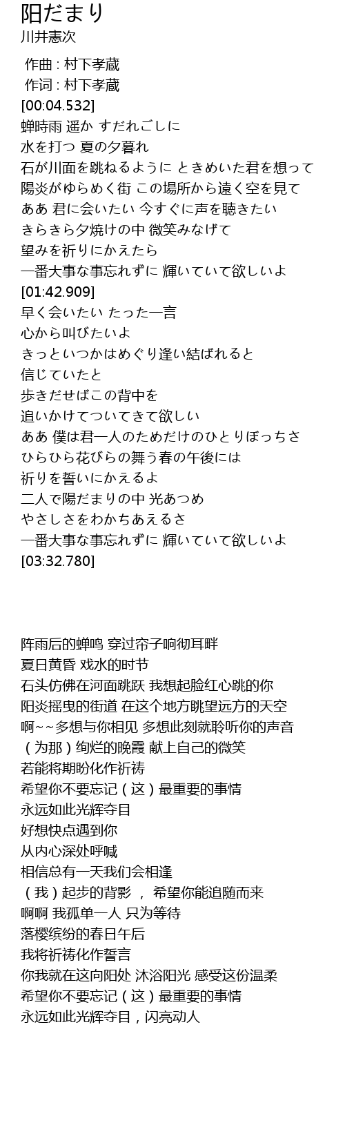 | [00:01.000] | 作词 : 村下孝蔵 |