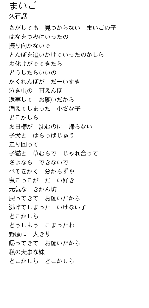 さがしても 見つからない まいごの子 |