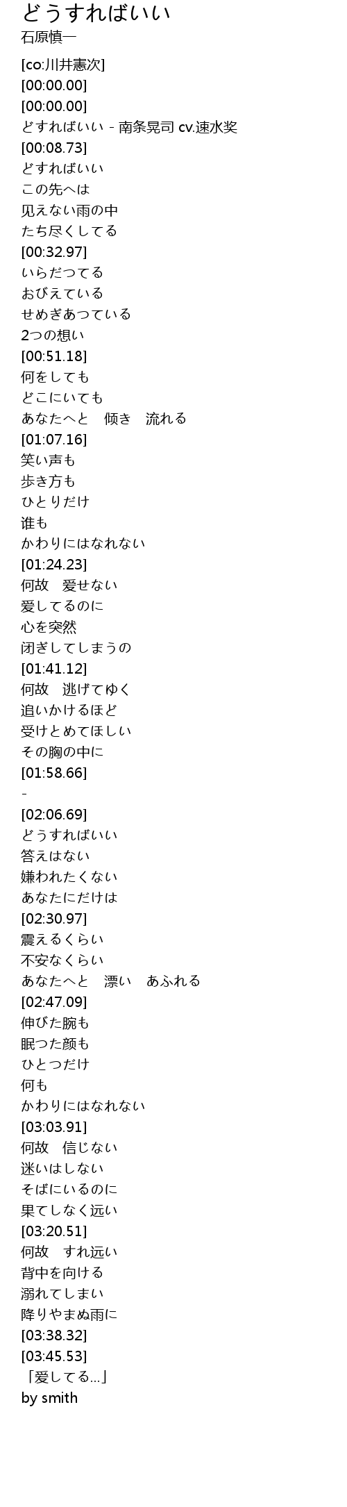 | [00:00.00] | どすればいい - 南条晃司 cv.速水奖 |