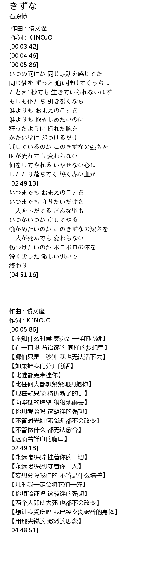 | [00:01.00] | zuò cí : K INOJO |