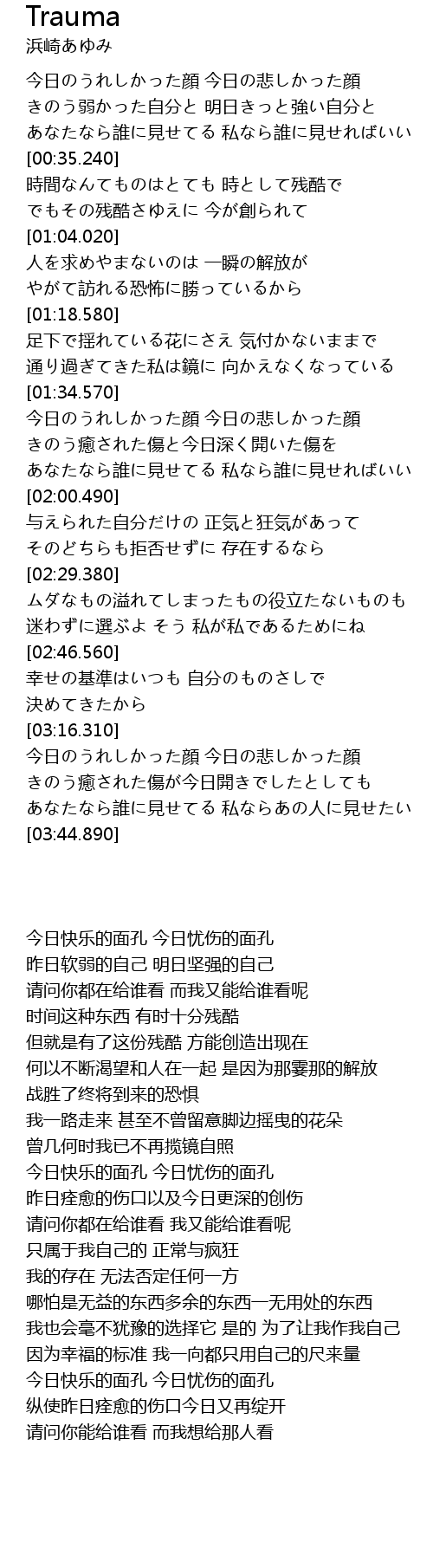 | [01:43.660] | きのう癒された傷と今日深く開いた傷を |