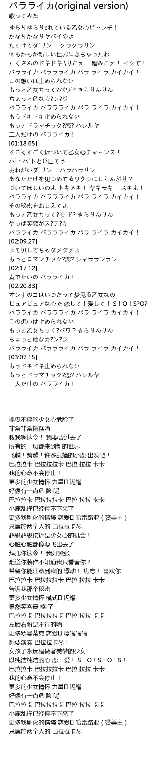| [03:04.58] | 巴拉拉卡 巴拉拉拉卡 巴拉 拉拉 卡卡 |