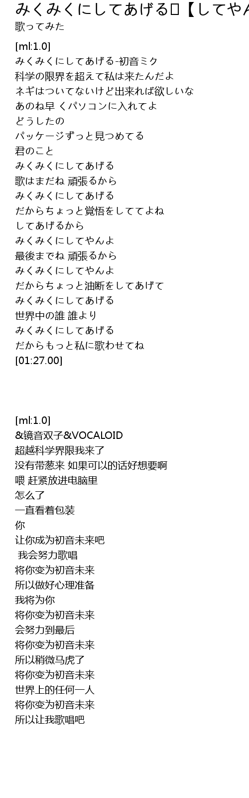 | [00:43.23] | みくみくにしてあげる |