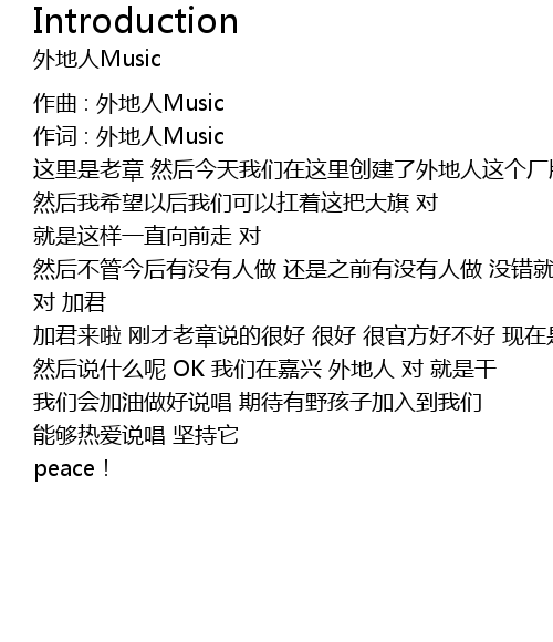 | 这里是老章 然后今天我们在这里创建了外地人这个厂牌 | |