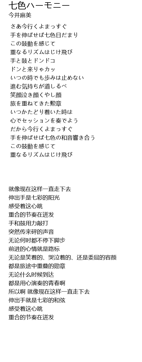 | [00:09.55] | 手を伸ばせば七色日だまり |