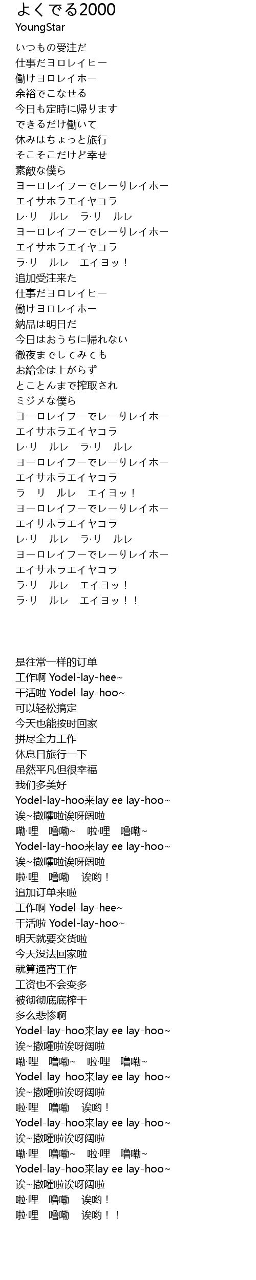 | [00:07] | 工作啊 Yodel-lay-hee~ |