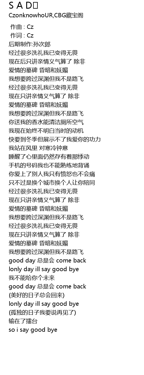 | [00:00.000] | zuo qu : Cz |
