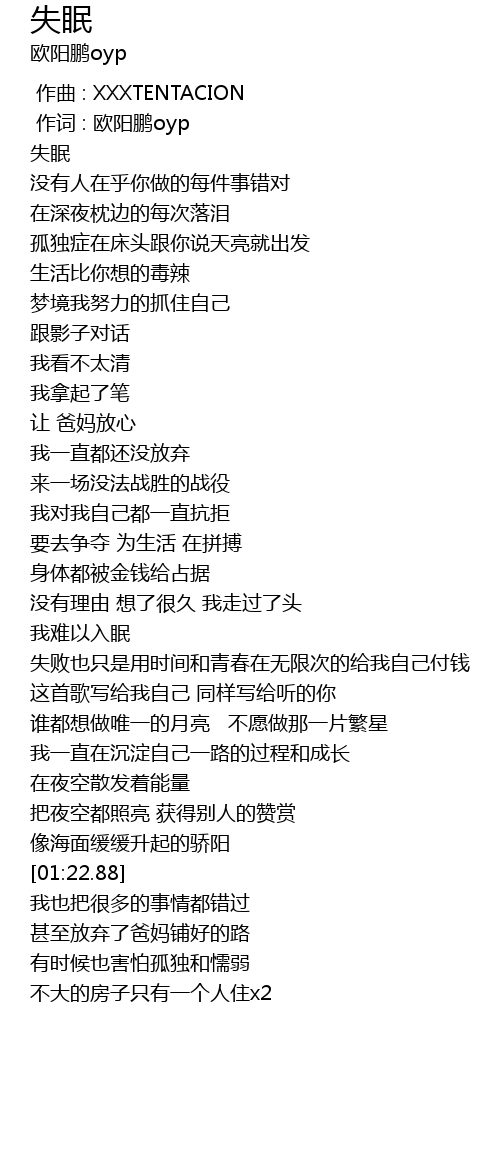 | [00:01.000] | 作词 : 欧阳鹏oyp |