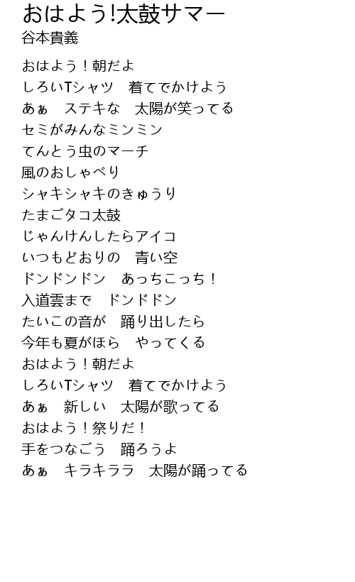 | 歌曲 | おはよう!太鼓サマー |