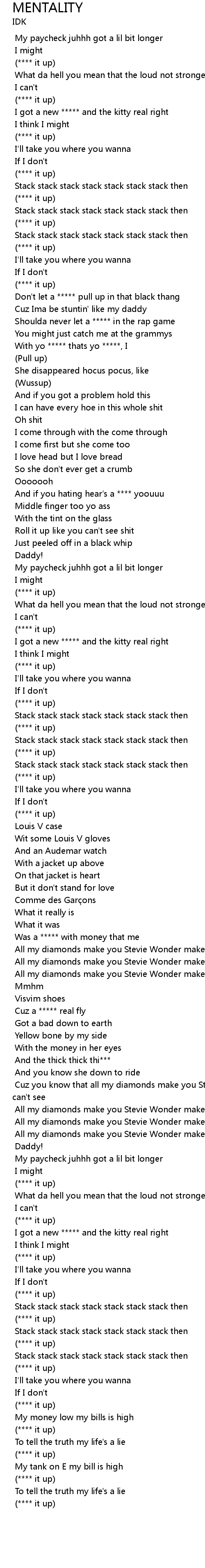 | [01:05.632] | With yo ***** thats yo *****, I |