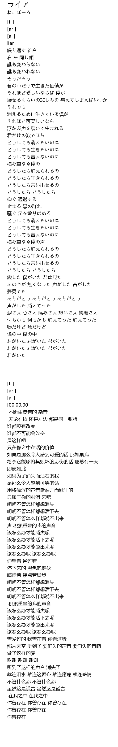 | [03:08.61] | 嘘だけど 嘘だけど |