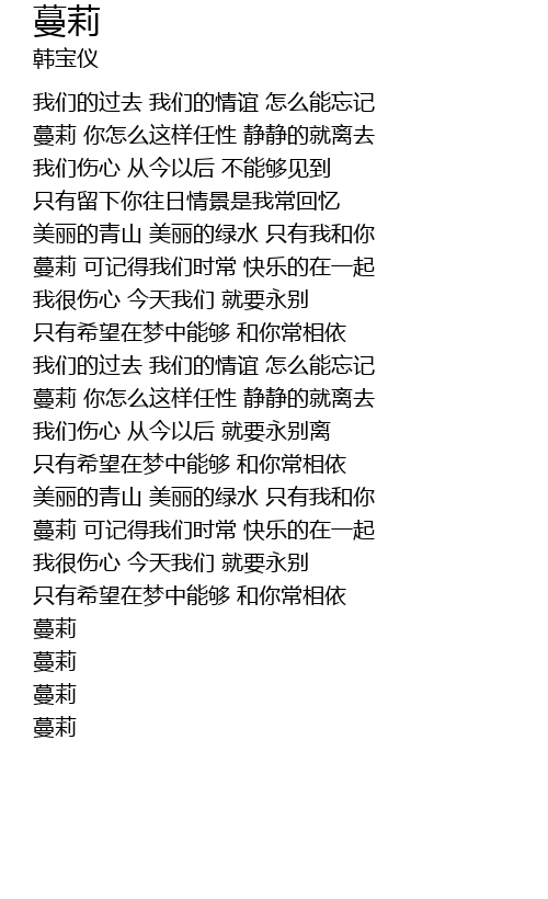 | [00:21.780] | 蔓莉 你怎么这样任性 静静的就离去 |