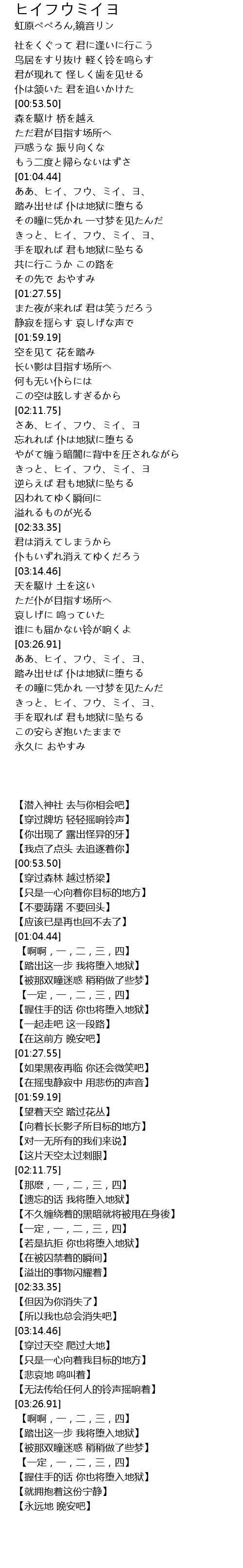 | [02:22.57] | きっと、ヒイ、フウ、ミイ、ヨ |