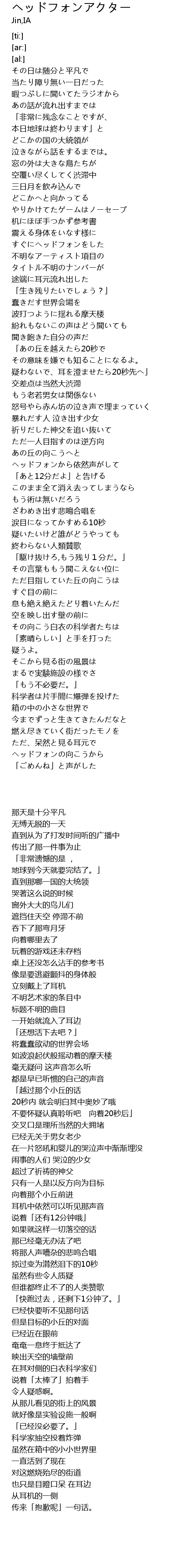 | [02:00.17] | ヘッドフォンから依然声がして |